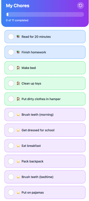 My first step was to prompt Claude with: Help me create a proof of concept chore tracker app for my kids. The results were pretty good. Good enough in fact to inspire some additional prompting.
