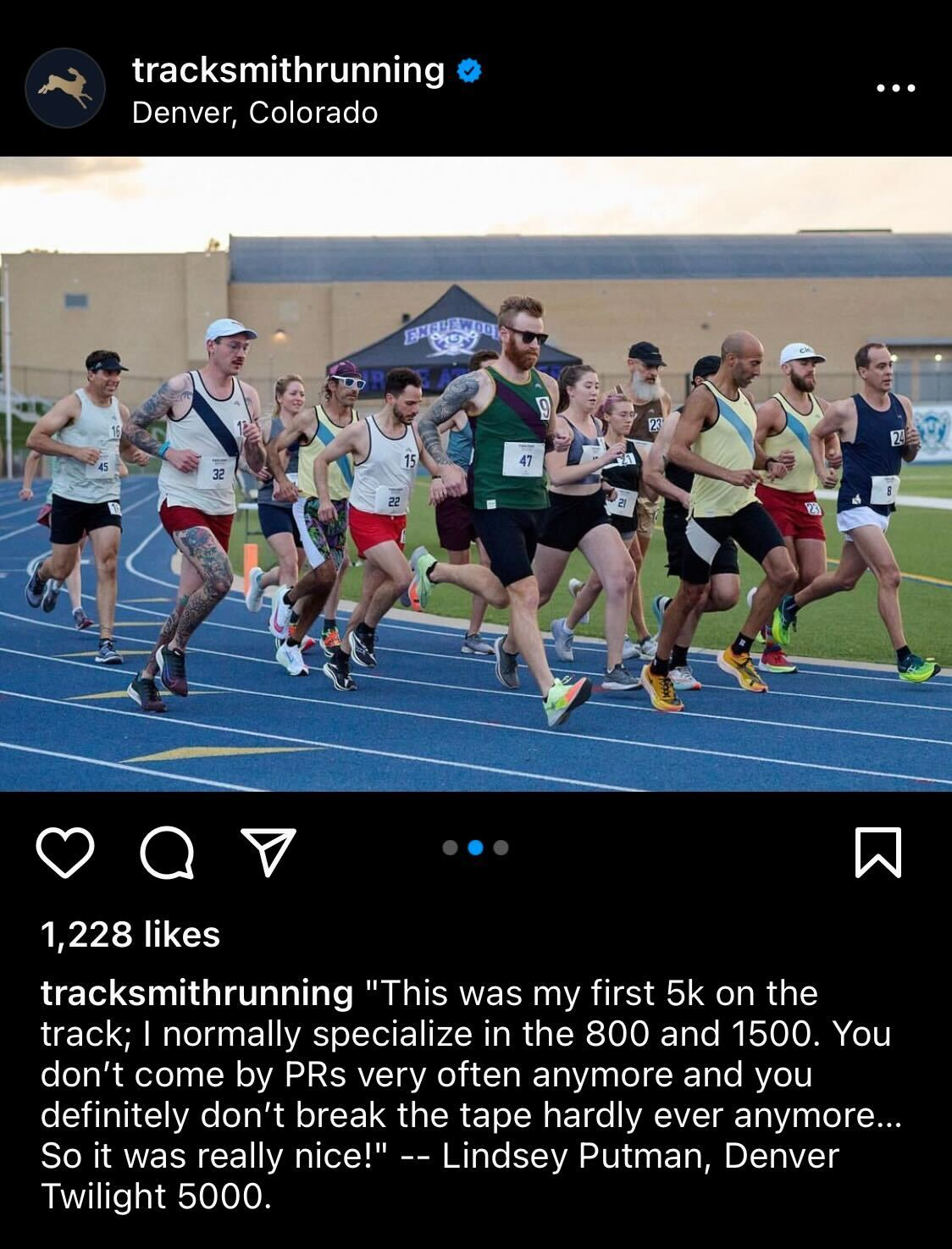 I recently competed in the Tracksmith Twilight 5000 race, held at the Englewood High School track in Denver. The vibes were great. Not only did this event mark my debut in track racing, but it was also my fifth official attempt at the 5K distance. With a finishing time of 22:08, I managed to set a new personal record.